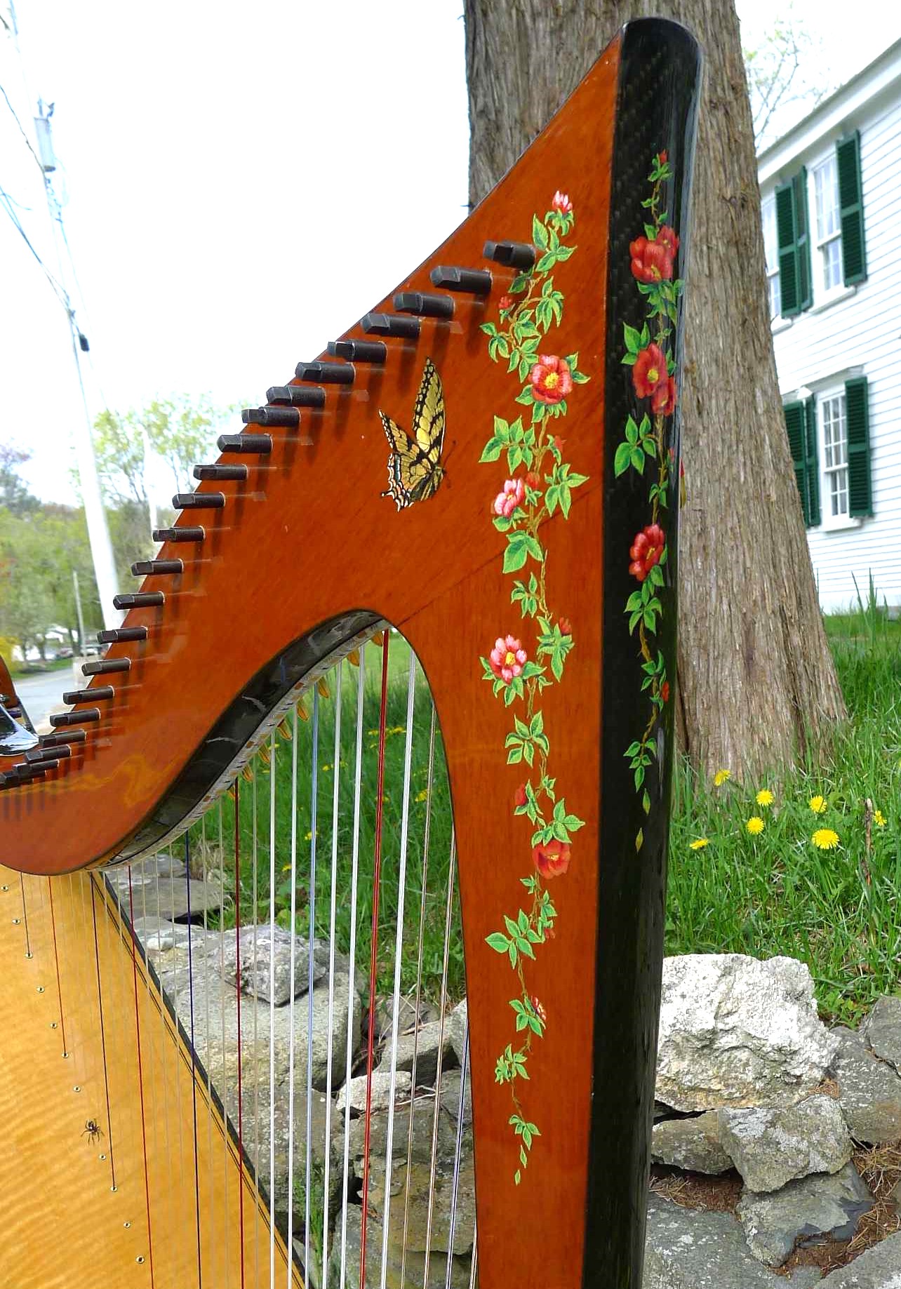 Traditional solid wood harps have a rich, wonderful sound, but at the expense of longevity, stability and resilience. The all-carbon fiber harps have strength and resilience but at the expense of a rich, full sound.